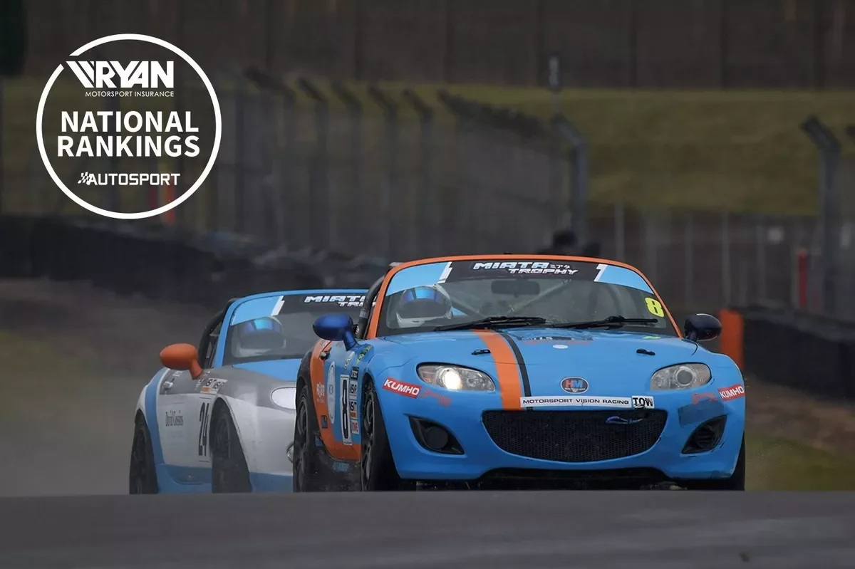 Mazda MX-5 star Aidan Hills climbed further towards the summit of the Ryan Motorsport Insurance Autosport National Rankings after another win at Donington Park last weekend.